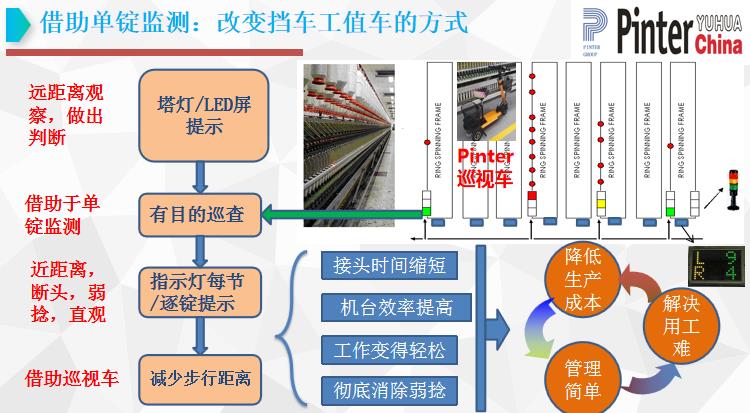 工作環(huán)境和勞動(dòng)強(qiáng)度的改變:使工作變的輕松,提高工人積極性,改變招工難的現(xiàn)狀。飛花減少,一方面有利于紗線質(zhì)量,另一個(gè)方面減少污染,環(huán)境得以改善,飛花減少,減少清潔次數(shù),增加車間的潔凈度。減少擋車工及保全工,降低用工成本。